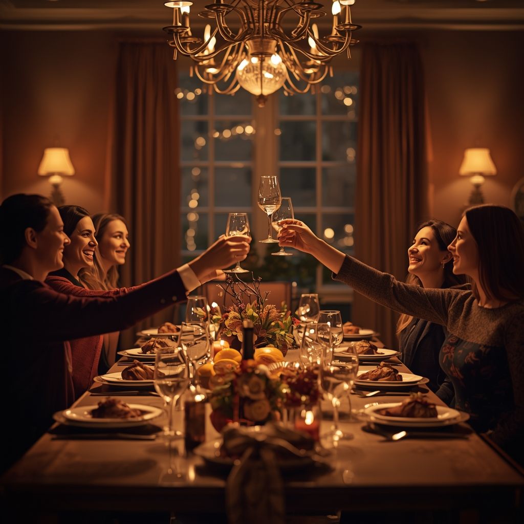 Composition: Intimate family toast moment (ChatGPT/Perplexity angle) with visible emotional connection