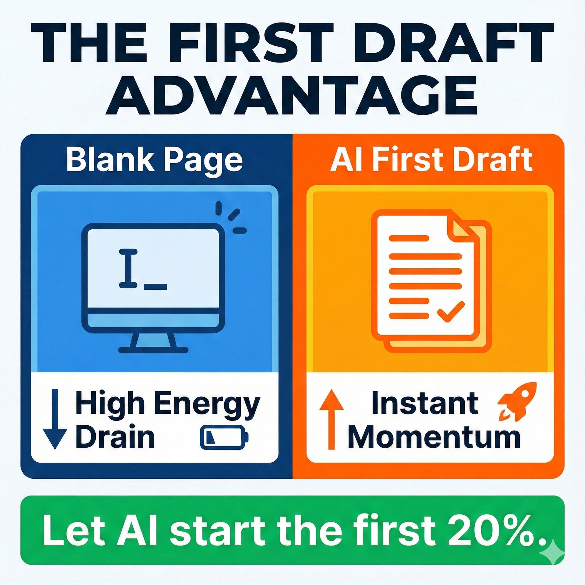Here’s the shift that changes everything today: stop starting from zero. Let AI build the rough first draft so your brain never has to push uphill again.